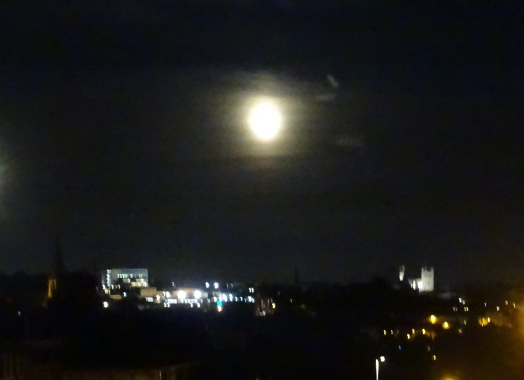 That was on Saturday, today, Tuesday there is a glorious Hunter’s Moon just above Exeter Cathedral.
