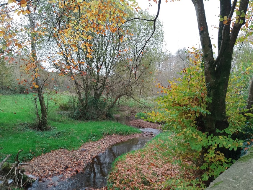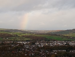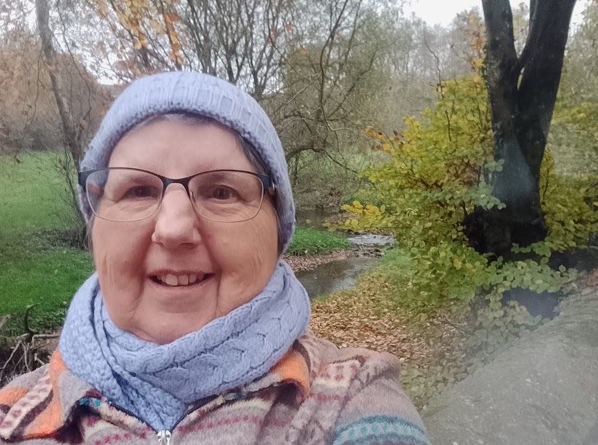 And, to round off the week, I took a walk in the pale autumn sunshine and kept on walking, up and up, until I reached the top of Roundball Hill. This is something I have not done for too long and was really pleased that all the exercises I have been doing targeting my legs has paid off. It was a tad difficult coming down though with my muddy gloves bearing witness to a rather slippery bit. But I did not slip over completely and used my walking pole to aid my descent. I was surprised as to where the path emerged….evidently a new route has been added since I last lived here, or I had been using a less amenable route back but, now I know, I can venture up either way to the top.