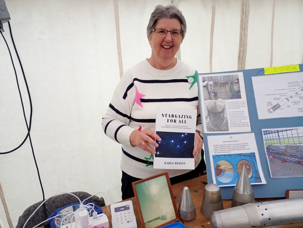 Well, the Sidmouth Science Festival family day at the Norman Lockyer Observatory happened, despite the poor visibility and persistent rain. This latter did not dampen the spirits of those attending. Many were fascinated by our display of a wind tunnel model of the Blue Streak rocket. A full lecture theatre were enthralled by my daughter (very proud mother moment!) giving a talk about solar system formation, and her research. I would have liked to have sold more of my books, although I was pleased by how many people picked up a copy to look through. A veritable whirlwind of a weekend!