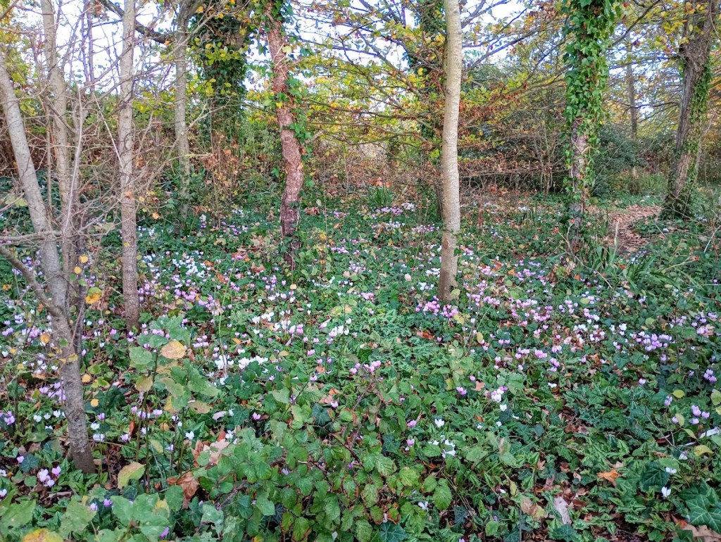 The month began with an interesting live discussion with other astronomy enthusiasts hosted by New Life Radio, including my daughter which was lovely, and on Sunday a dress rehearsal for Carmen in which I play the part of the Flower Seller…thankfully no singing, and on Tuesday a well-received presentation about William Lassell whose letter I had found in the University of Exeter archives. The letter had been sent from his home in Maidenhead, my original home town, and not knowing of the man, I researched his story. And what a story it was. He discovered many moons of Uranus and Neptune, and built many telescopes including a massive, state of the art, 24″ one. He began his life in Liverpool, moved to Malta, then moved to Maidenhead. And why not? It contains one of the loveliest stretches of river anywhere. If you are reading this today (5th November), forget about fireworks and look for the big super full moon. The moon appears large because it is still quite low on the horizon and is also on one of the nearest points to the Earth on its orbit. Oh, and I had a nice walk along another river, where there were swathes of beautiful cyclamens.