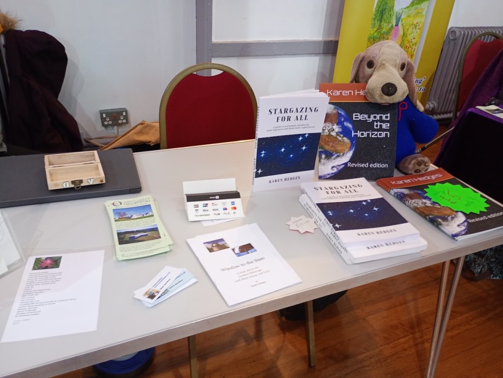 Not exactly a snappy title but I’m tired from the drive, the event, the drive back, via a cameo performance in Iryna Ilnytska’s Carmen at the University of Exeter… A successful day in which I met many lovely people interested in the Norman Lockyer Observatory, space, stars, and my books. Peter from the Beyond the Horizon series of space adventure tales was there doing his best to attract interest. The SumUp machine worked well – thank you to my son for setting it up! An unexpected find was that people liked my homemade bookmarkers (which craftily contained my details on the back). No one bought any cards. There were carol singers, a puppet show, and a great deal of networking, and lots of mutual support for ourselves, books, libraries, and independent bookshops.